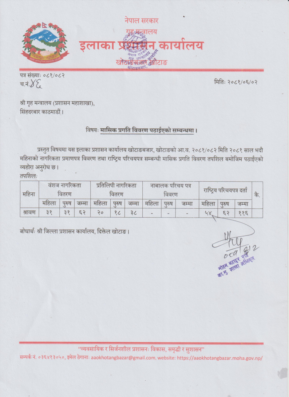 आ.व. २०८१/०८२ श्रावण महिनाको मासिक प्रगति विवरण