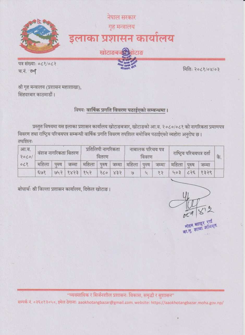 आ.व. २०८०/०८१ काे वार्षिक प्रगति विवरण ।